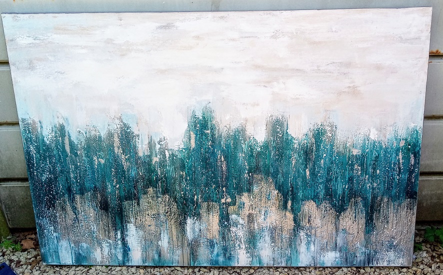This is a huge (60" x 40") factory painting. Has an interesting look with heavy impasto. They didn't even bother to put a fake signature ... LOL! Bought for $10.00.