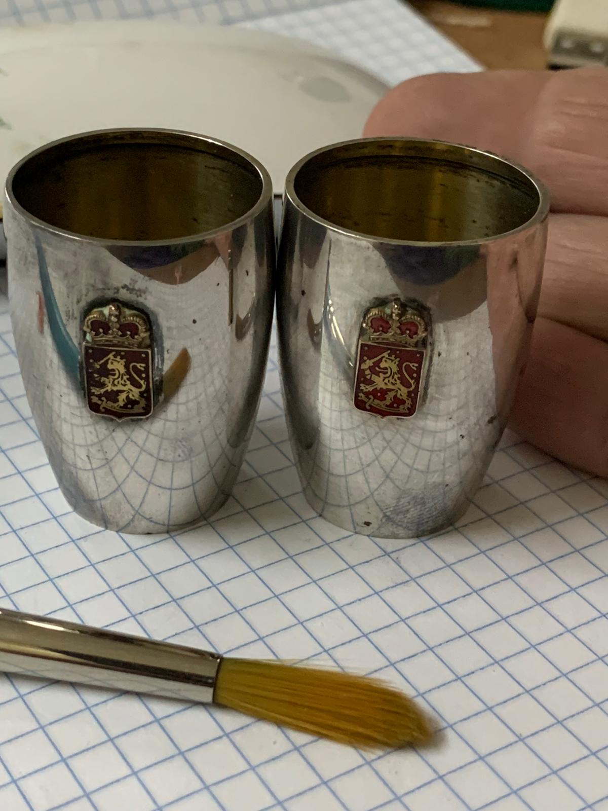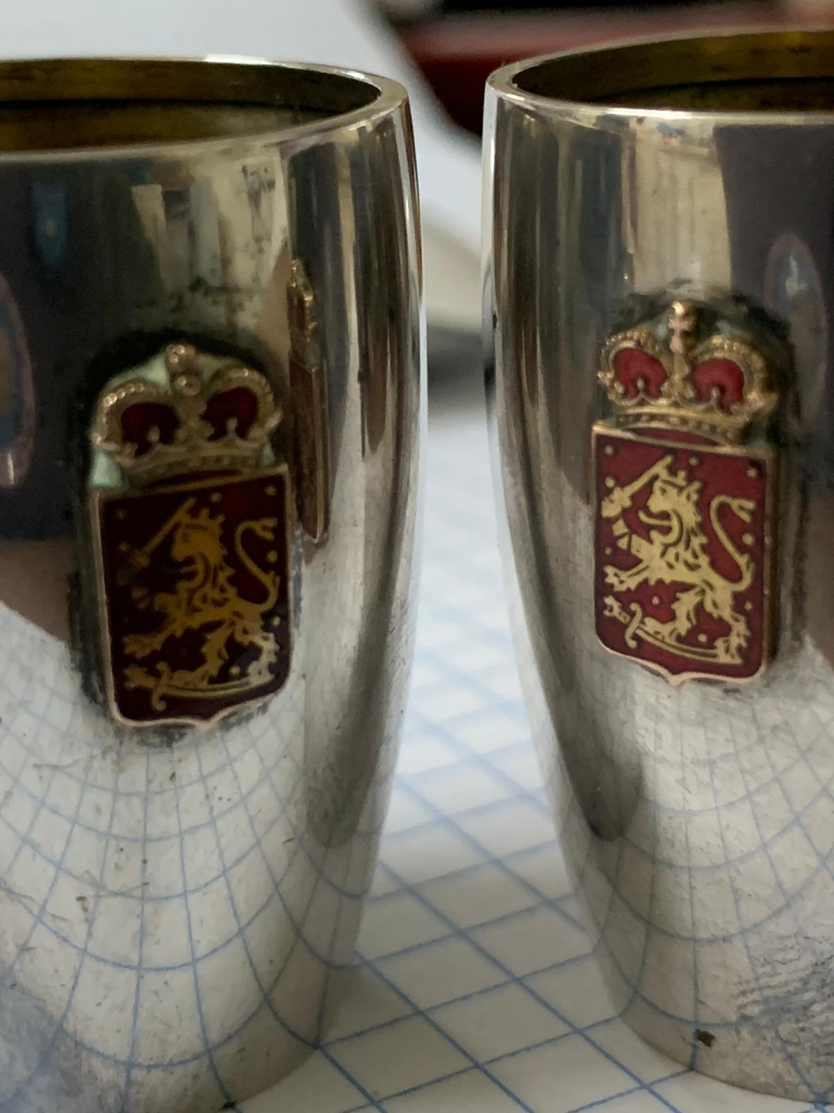The enamel plaques show the Finnish coat of arms, they were produced in 1928 of .813 silver by the Turku maker below:
