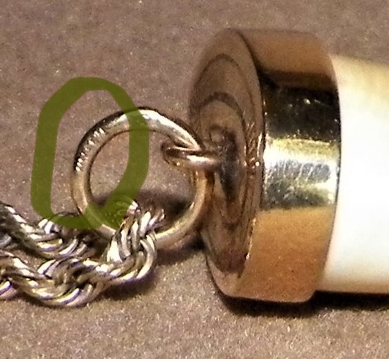 Agreeing on tiger claw wannabe for this sort of thing: https://www.google.com/search?sxsrf...mAhVwplkKHTmxDnMQsAR6BAgJEAE&biw=1600&bih=764 Can't see well enough to attempt a call on ivory or not, but originals souvenirs of Indian big game hunting, so maybe. Marks on pre-made parts like jump rings may or may not speak for metal used elsewhere.