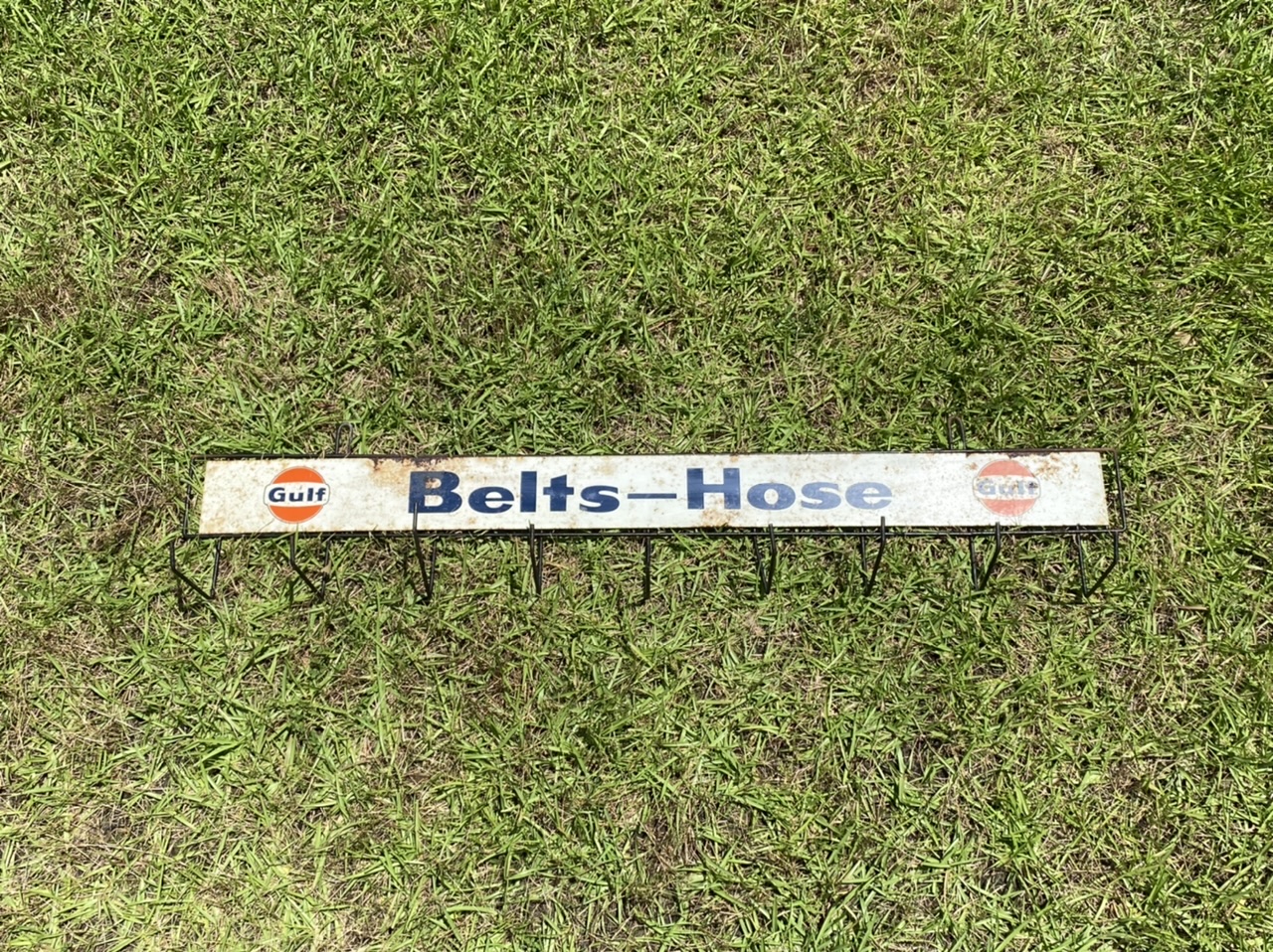 Vintage Gulf belts and hose display
