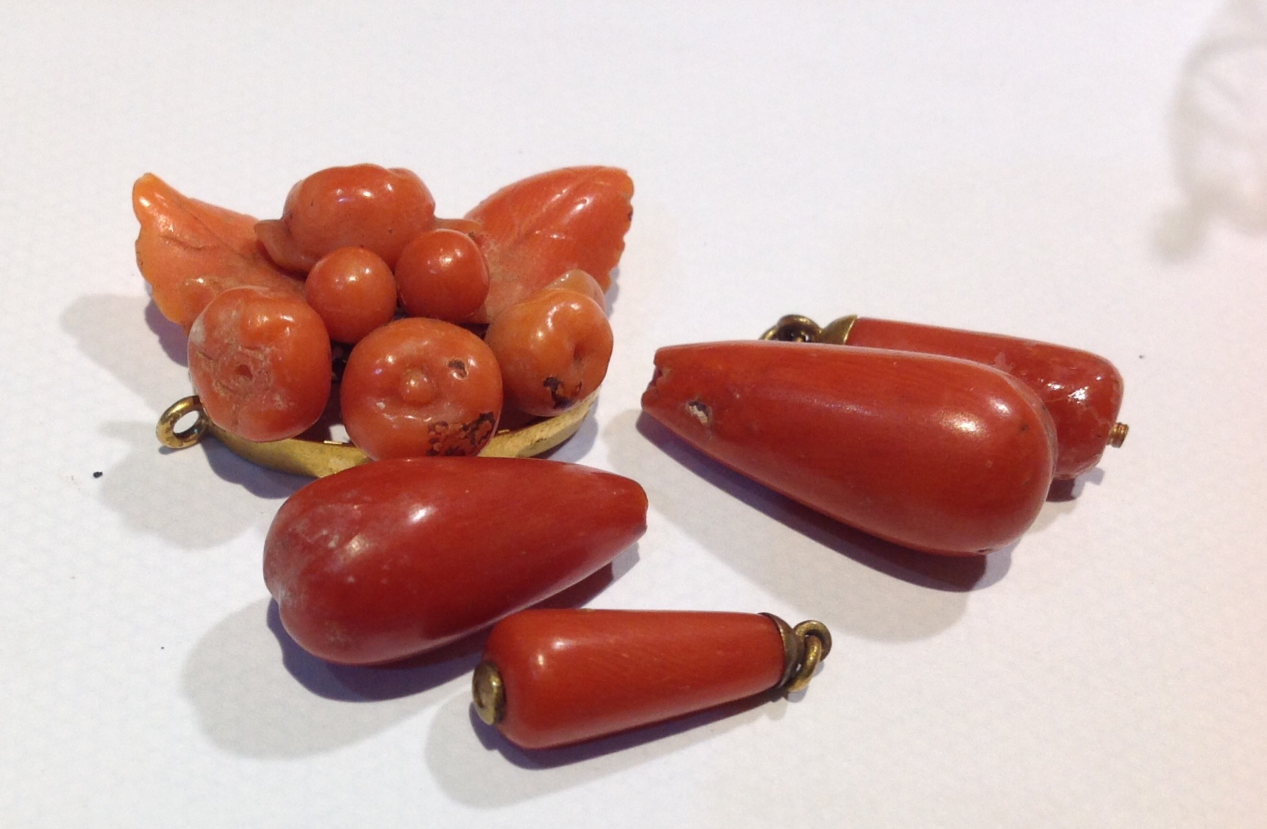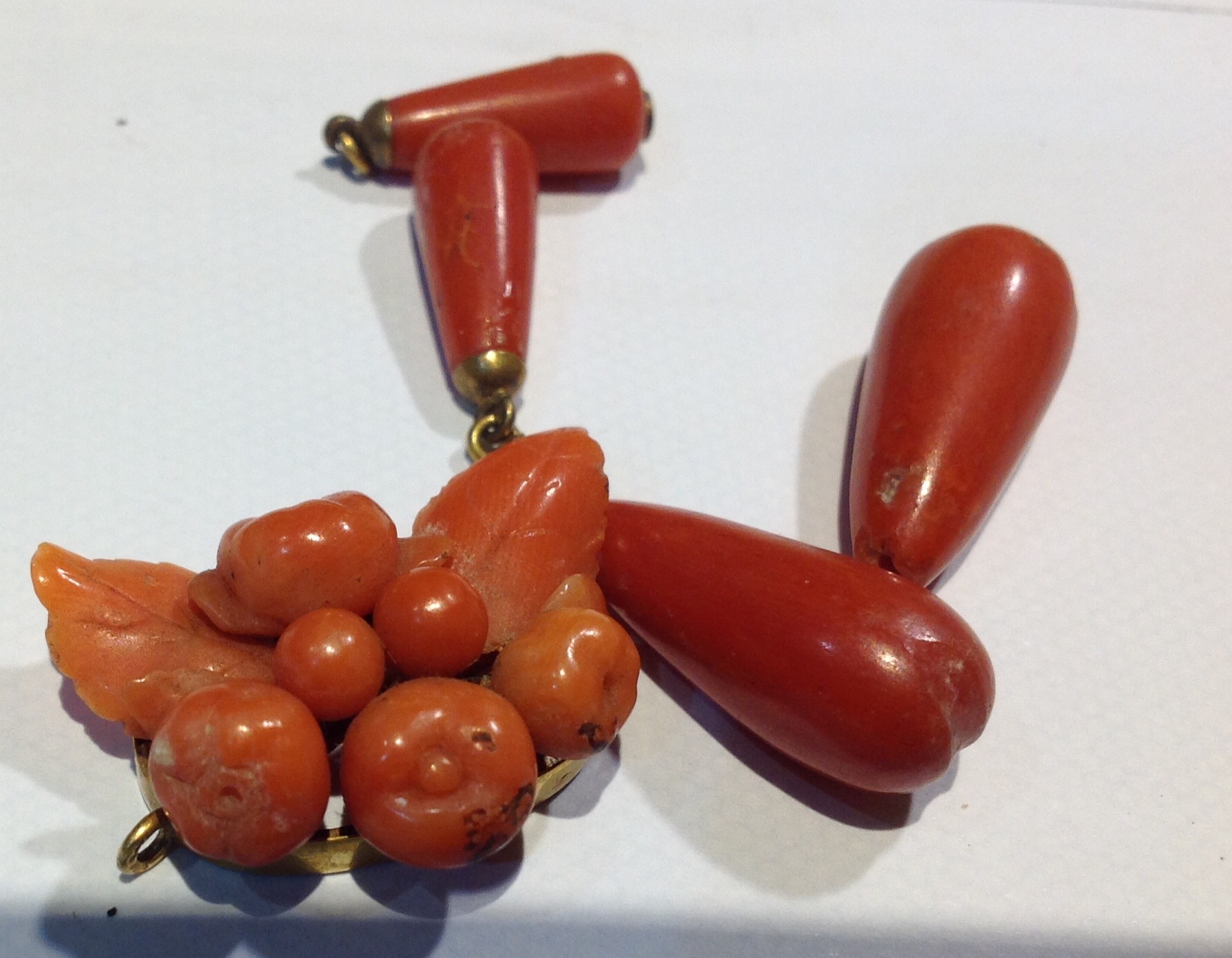 I thought it might be the coral looking necklace in the very first picture in the top left hand side .. it has the elongated beads that I see sometimes .. OH WELL !! ... Joy. :)