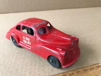 Not sure either of these two links will work, or even persist to display the correct pic, but both identify what appears to be an identical vehicle as Hubley: https://www.bing.com/images/search?...LjofdPp92o_K_hnPLA4gHaFF&exph=506&expw=736&q="fire+chief"+toy+car&selectedindex=122&vt=0&eim=1,2,6 https://www.pinterest.com/pin/298152437805725076/ komokwa, thanks for the like for our ellipsis -- got all het up thinking we'd noticed some valuable information, posted, immediately realized we were way off the beam, couldn't delete our post, so just edited it down to dot dot dot before it exposed us as blithering idiots...
