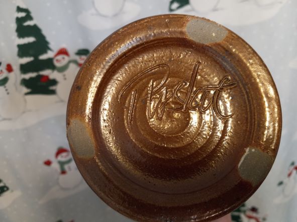 My best guess is a paperweight made to look like a cat's or reptile's eye. It seems to be made of hard plastic and to have flecks of copper or gold in it. Does anyone recognize it? Thanks!
