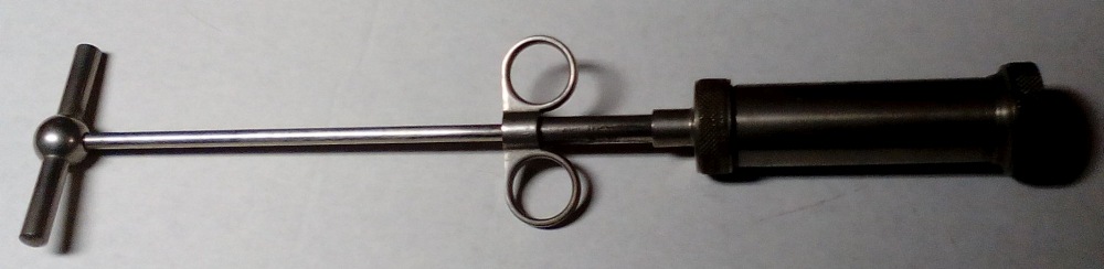 For inserting Dentocoll into molds....I still don't quite know why they needed the two plungers, or why when open one plunger would need to extend so far beyond the barrel; maybe for cleaning? I'm guessing one would put the raw stuff in the barrel, close it up for mixing, maybe add a special tip for squirting into the molds. But I can research that. Thanks, Davey! and all others who responded with their ideas.